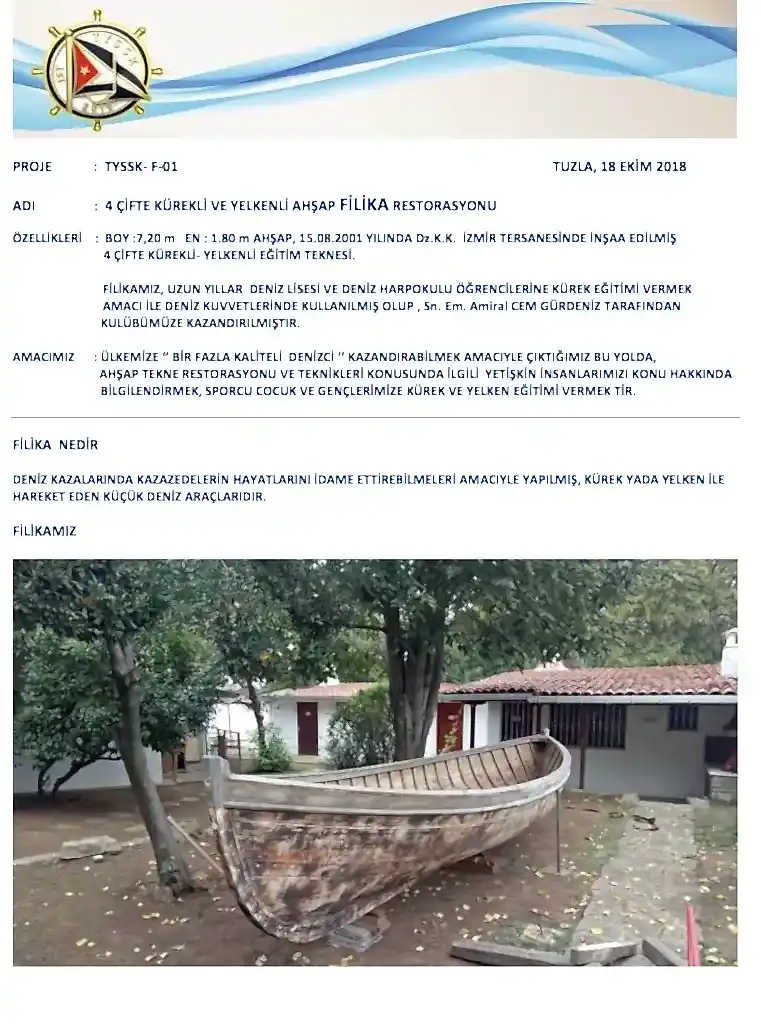 Filikamız uzun yıllar deniz lisesi ve deniz harp okulu öğrencilerine kürek eğitimi vermek amacı ile deniz kuvvetlerinde kullanılmış olup, Sn. Em. Amiral Cem GÜRDENİZ tarafından kulübümüze kazandırılmıştır.